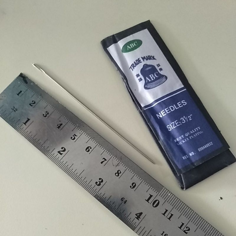 Ujung lancip : chenille no. 16 (panjang jarum sekitar 5cm) dan jarum kasur (panjang jarum sekitar 9cm)