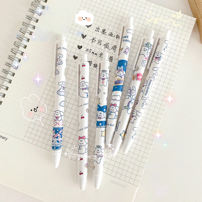 Detail 1 Pc Kawaii Lucu Press Pen Kartun Anjing Putih 0.5 mm Hitam Tinta Gel Pulpen Siswa Menulis Alat Tulis Kantor Perlengkapan Sekolah