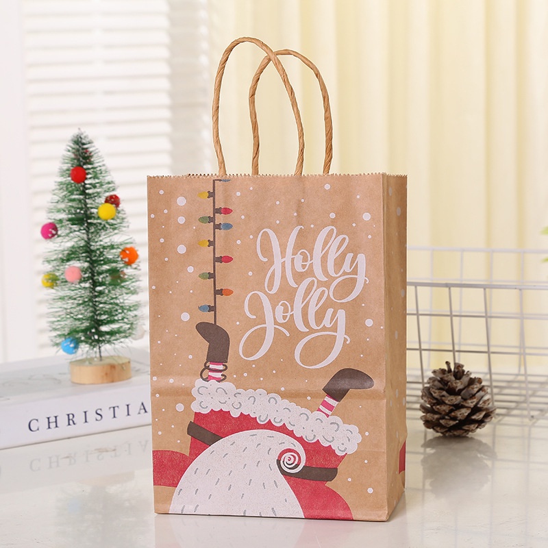 Detail 1 Pc Tas Kertas Kraft Motif Santa Claus Kaus Kaki Pohon Natal Untuk Perlengkapan Pesta