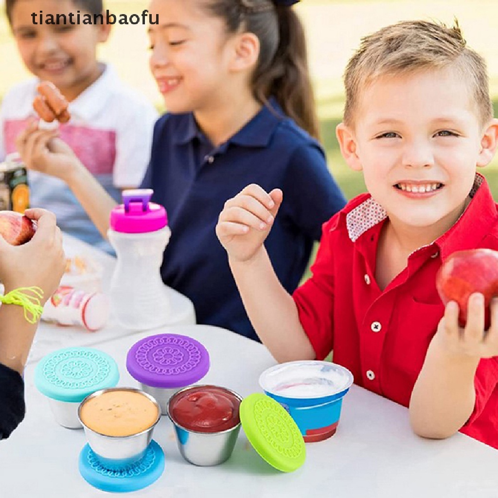 Fitur: 1. Cukup kencang untuk menjaga wadah bumbu kedap udara dan tidak ada kebocoran atau tumpahan lebih lanjut. Jadi Anda Tidak Perlu Khawatir Tentang Tumpahan Saus Dan Mengotori Kotak Makan Siang Atau Ransel Anda. 2. Cangkir Saus Stainless Steel Hanya 2,38 Ons, Yang Sangat Nyaman Untuk Dilaksanakan. Sempurna untuk sekolah atau makan siang kerja, piknik, barbekyu, pesta, perjalanan dan banyak lagi. 3. Terbuat dari silikon berkualitas tinggi dan 304 Stainless Steel, bebas BPA. Wadah bumbu ini dapat digunakan kembali dan membantu mengurangi penggunaan banyak cangkir bumbu sekali pakai. Mengurangi Limbah, Lindungi Lingkungan, Dan Hemat Uang Di Saat yang Sama. 4. Penutup silikon lembut, mudah dibuka anak-anak. Tutup Multi-warna juga dapat digunakan untuk menyamarkan saus yang berbeda dalam wadah. 5. Kapasitas: Wadah Kecil 70ml Ringan, Dapat Ditumpuk Dan Mudah Disimpan. Mesin pencuci piring dan Freezer aman, mudah dibersihkan dan digunakan kembali.