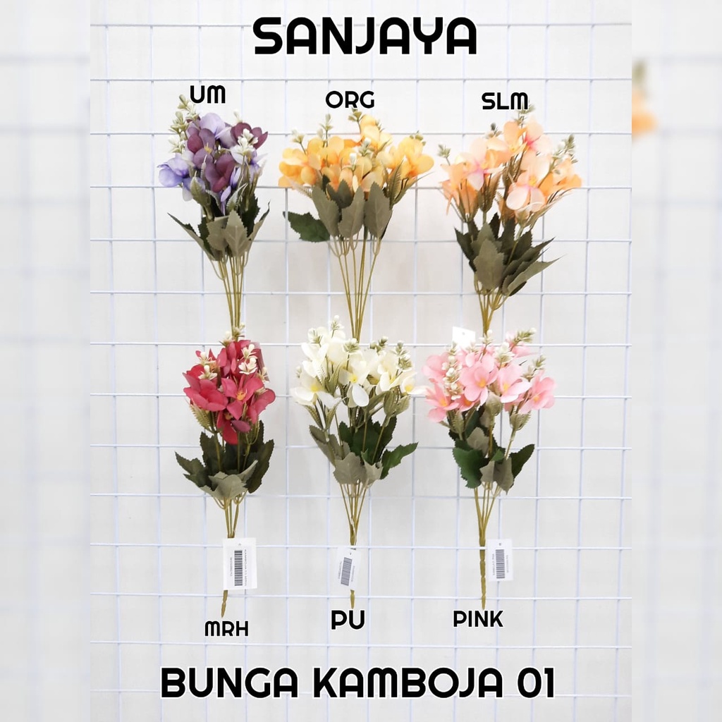 📦 Spesifikasi Produk : Ukuran : Kamboja 01 ⚫ Diameter kelopak bunga -+ 5 Cm ⚫ Tinggi -+ 30 Cm ⚫ 1 Tangkai ada 6 cabang (1 cabang ada 3 bunga)