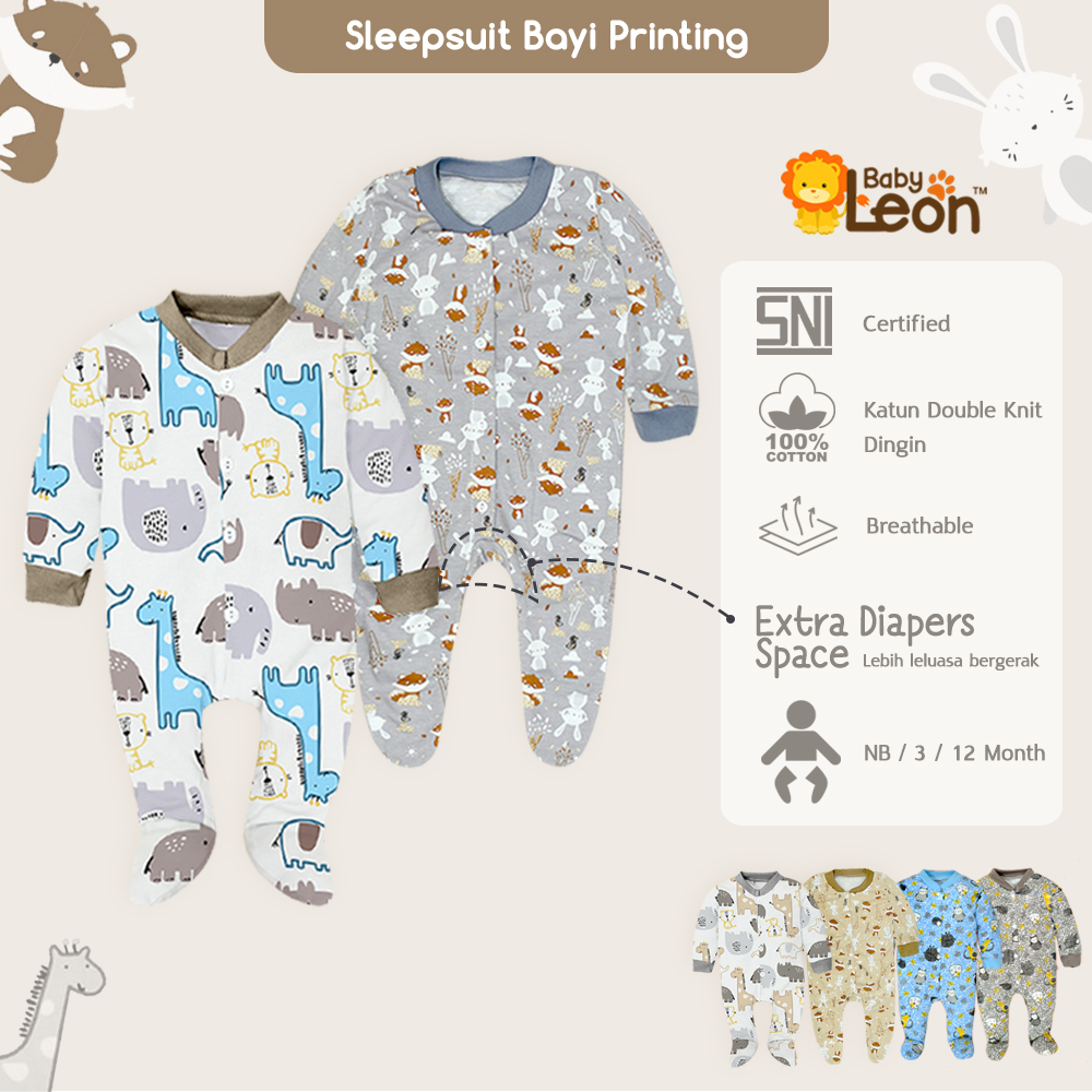 1 pcs Jumsuit Bayi Kaki Tutup Newborn BABY LEON (0-12 Bulan) Jumper Bayi Romper Bayi Baju Kodok Bayi Sleepsuit Baby Jumper Baju Bayi Panjang Kaki Buka DS-119 Jumper Kaki Tutup Bayi Jumpsuit Rib Bayi