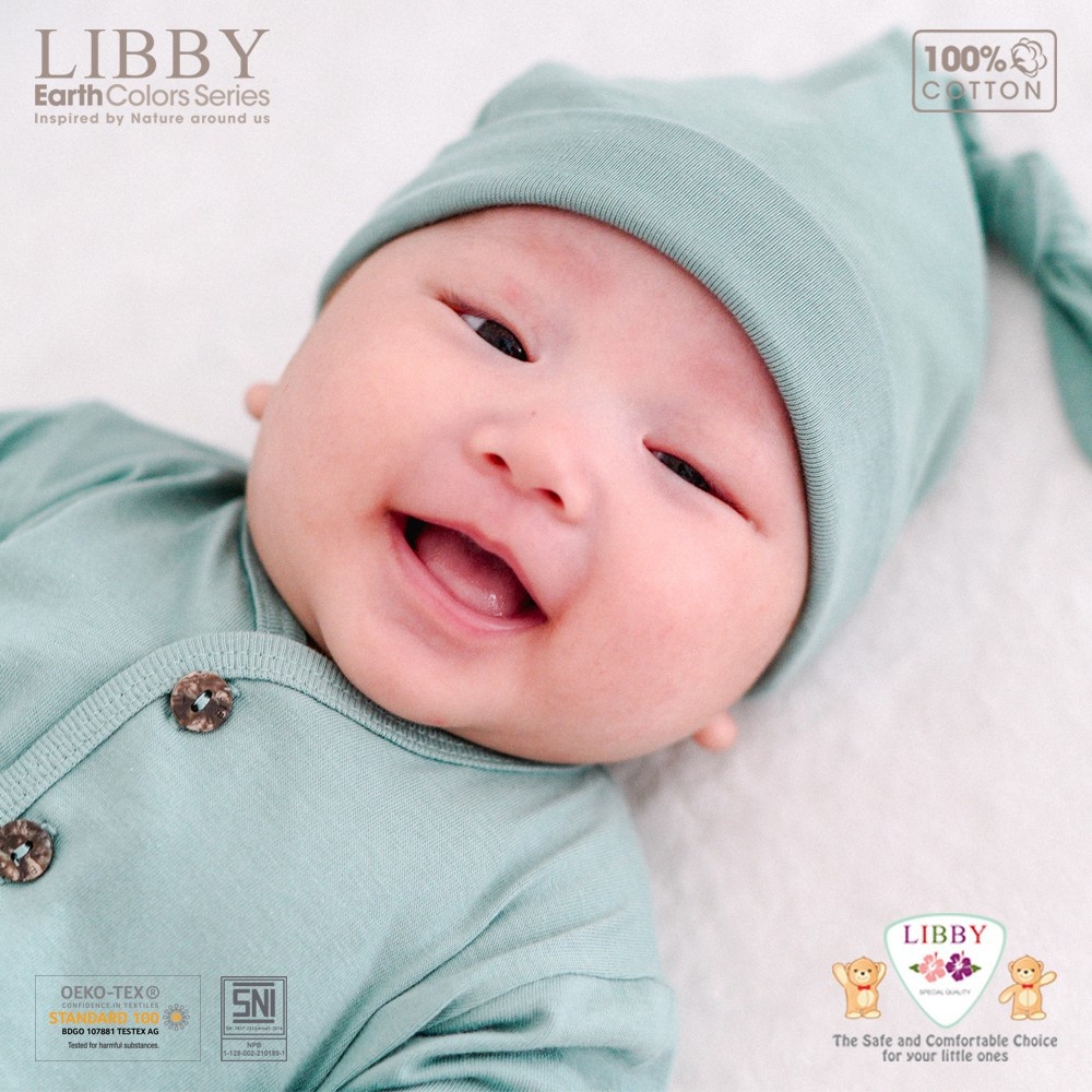 Keunggulan Topi Libby 1) Terbuat dari bahan special cotton yang sangat lembut. 2) Mudah menyerap keringat 3) Sudah tersertifikasi Internasional Oeko tex dan SNI, sehingga aman dan nyaman untuk bayi.