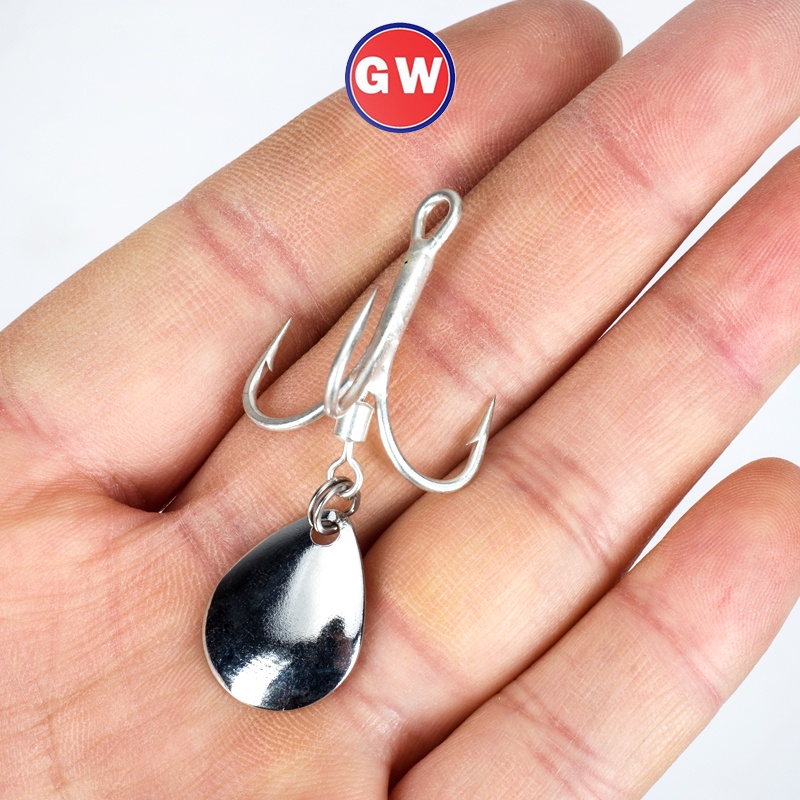 Detail 1 Pcs Sliver/Glod Treble Sendok Memancing Kait Baja Karbon Tinggi Putar Payet Treble Hooks Air Asin Air Tawar Ikan Kait