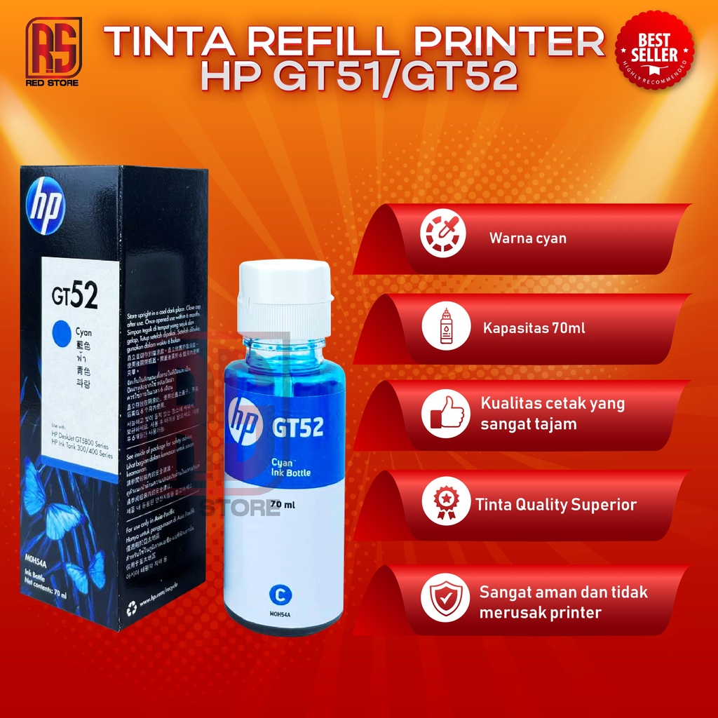 Tinta Printer Hp GT51 GT52 Support Printer :HP GT5810 (L9U63A) HP GT5820 (M2Q28A) GT51 Kapasitas : 90ml GT52 Kapasitas : 70ml