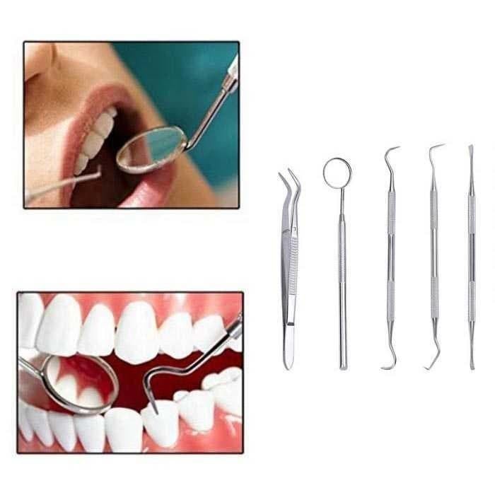 Set peralatan perawatan gigi yang biasa digunakan para dokter gigi ataupun ahli gigi untuk memeriksa keadaan gigi serta membersihkan ataupun memberikan perawatan untuk gigi. Terdiri dari 5 buah alat yang memiliki fungsi berbeda sesuai dengan bentuknya. Features