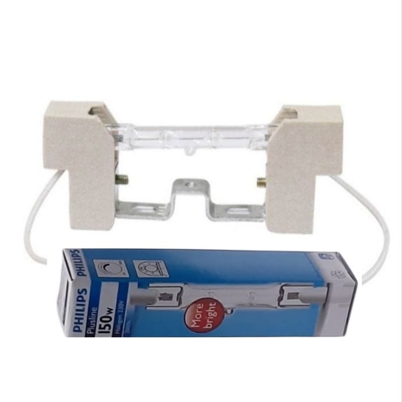 1 SET - FITTING DAN LAMPU HALOGEN STICK 150Watt HALOGEN PLUSLINE 150W.