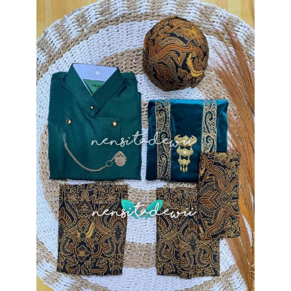 ➡️ Beskap : - Warna hijau botol - Model Solo (polos), kancing model sikepan - Bahan tessa : tebal, halus & adem - Jahitan rapih