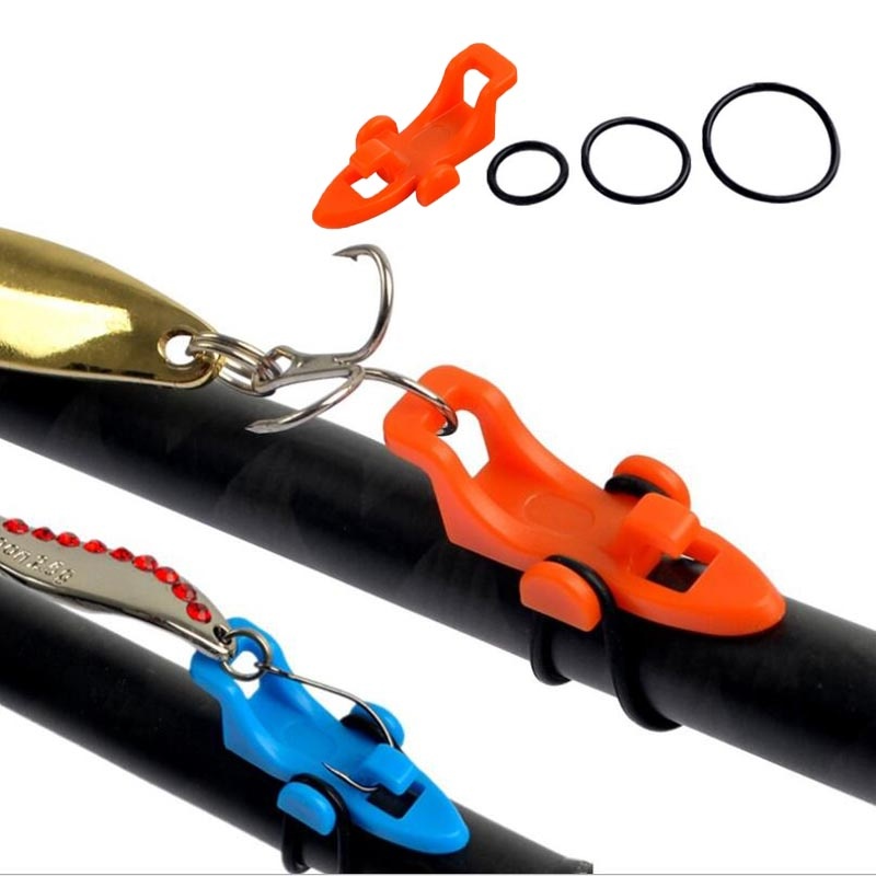 Spesifikasi Bahan: Plastik + Karet Warna: merah, hijau, hitam, oranye Ukuran: sekitar 26*13*8mm, diameter cincin karet (2.4 cm, 1.9 cm, 1.4 cm) Set termasuk: 1 * tempat kait pancing, 3 * cincin karet