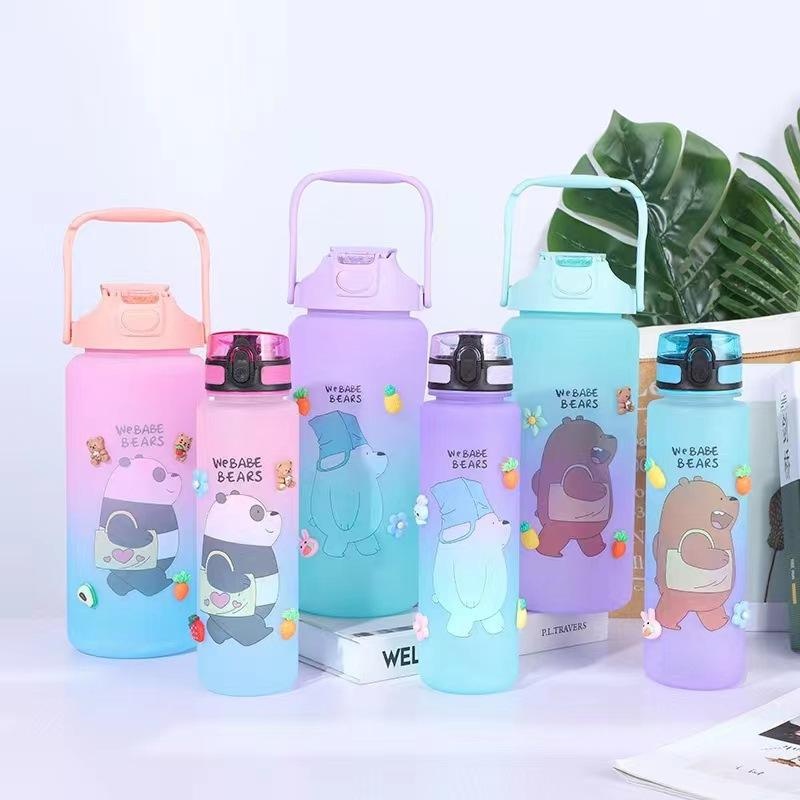 Detail (1 set isi 2pcs) Botol Minum 2 Liter Bare Bears Botol Pelangi Beruang Bare Bears