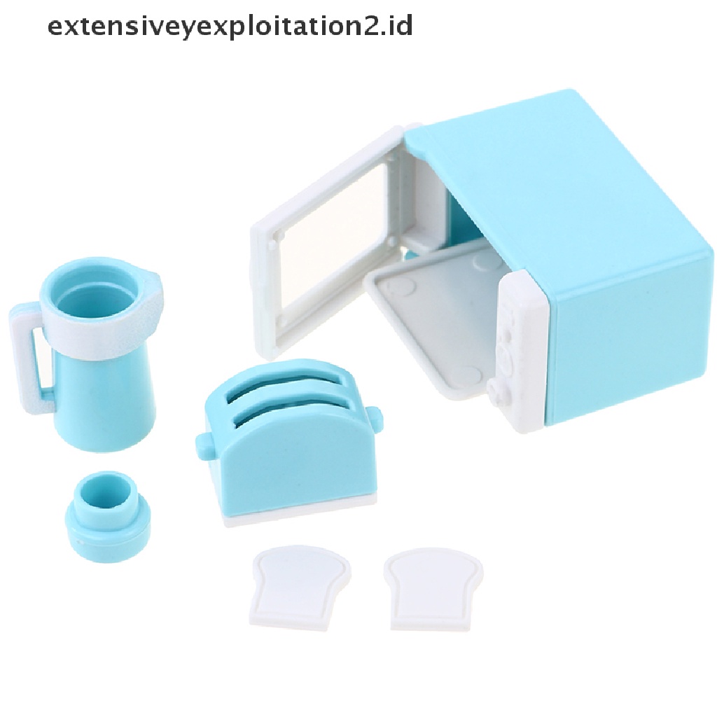 Detail 1 Set Mainan Miniatur Microwave + Teko Pembuat Roti Skala 1: 12 Untuk Dekorasi Rumah Boneka