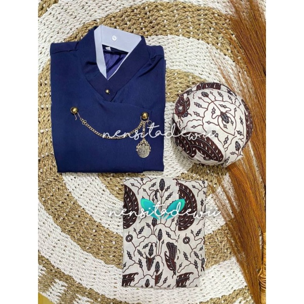 ➡️ Beskap : - Warna navy - Model Solo (polos), kancing sikepan - Bahan tessa : tebal, halus & adem - Jahitan rapih