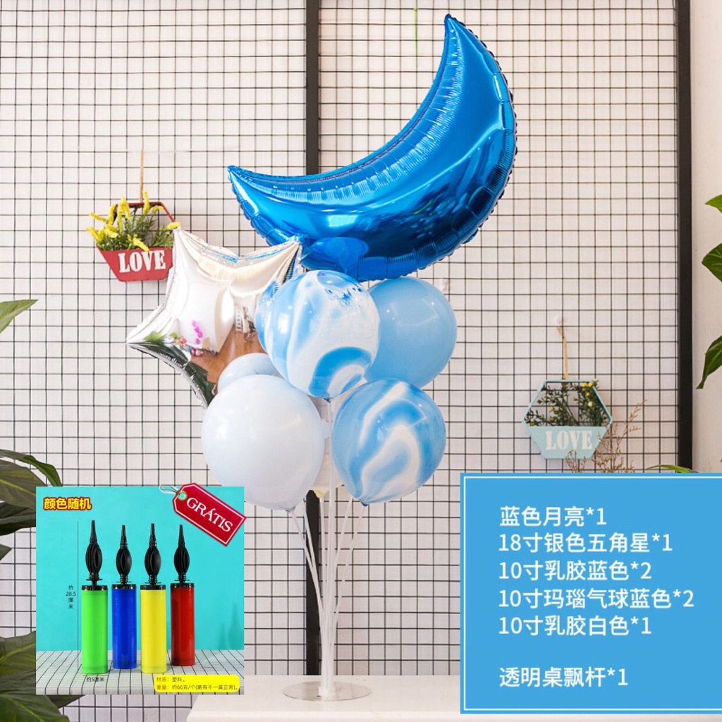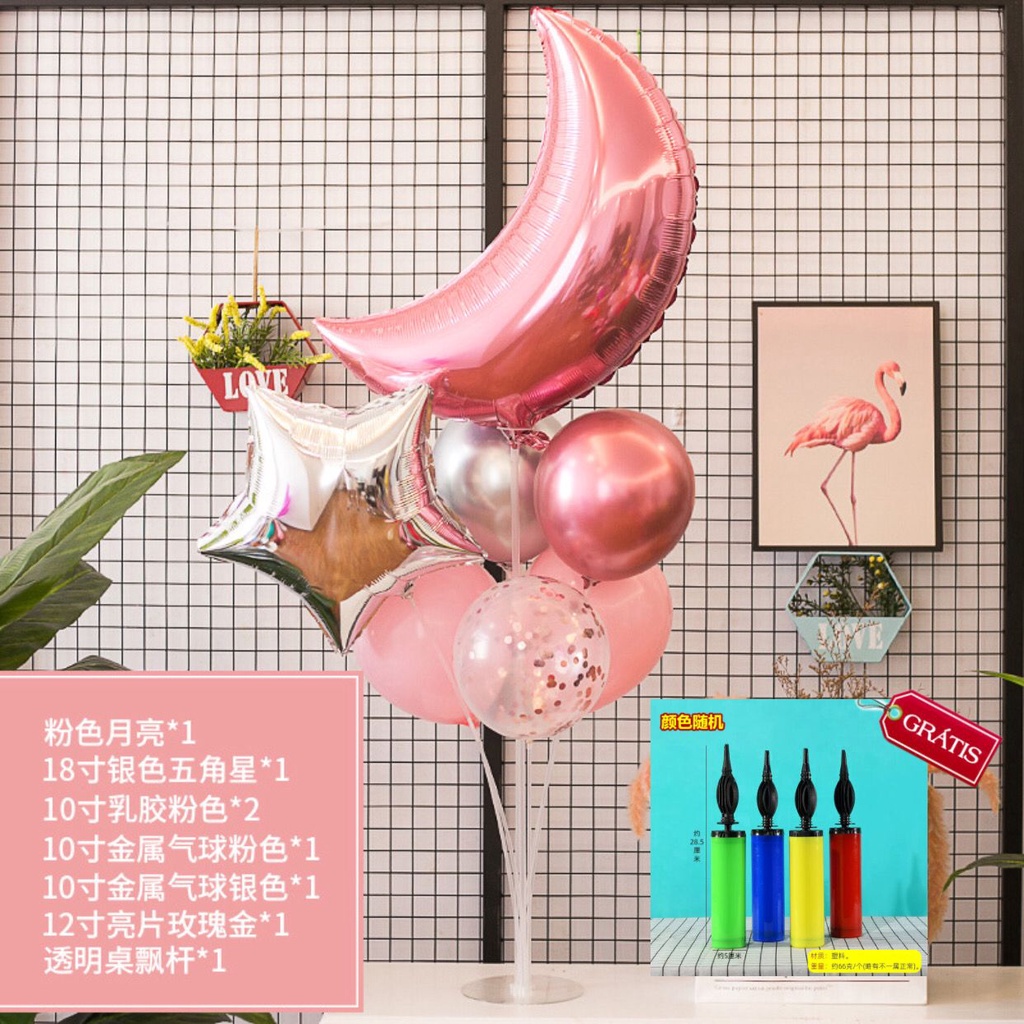 Detail 1 SET STAND STICK BALON ISI 7 FREE POMPA BALON MURAH / BALON BULAN BINTANG DEKOR ULANG TAHUN