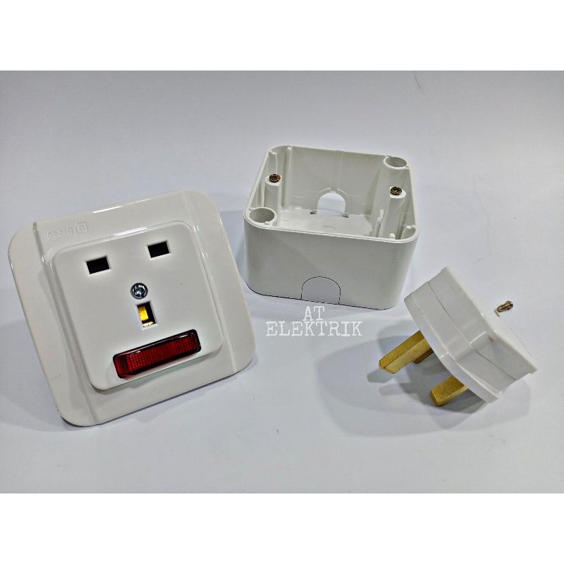Detail ( 1 Set )Stop Kontak AC Broco Galleo Putih / Rumah Colokan Buat Ac / Colokan AC