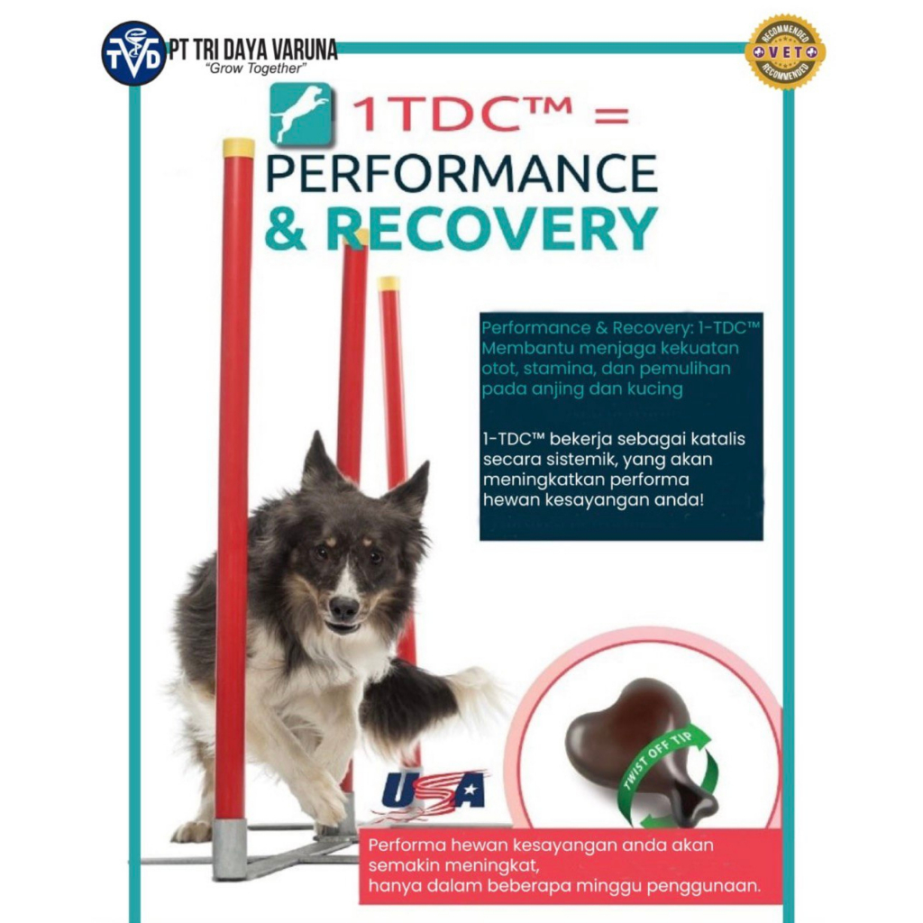 Apa itu 1-TDC? Suplemen nutrisi alami yang dirancang untuk mendukung kesehatan gusi dan sendi pada anjing dan kucing. 1-TetraDecanol Complex (1-TDC) adalah minyak asam lemak teresterifikasi yang mendukung jaringan gusi yang sehat dan dapat mengurangi risiko penyakit periodontal. 1-TDC juga berfungsi untuk mendukung kesehatan dan fungsi sendi anjing atau kucing Anda, membuatnya tetap aktif dan bergerak.