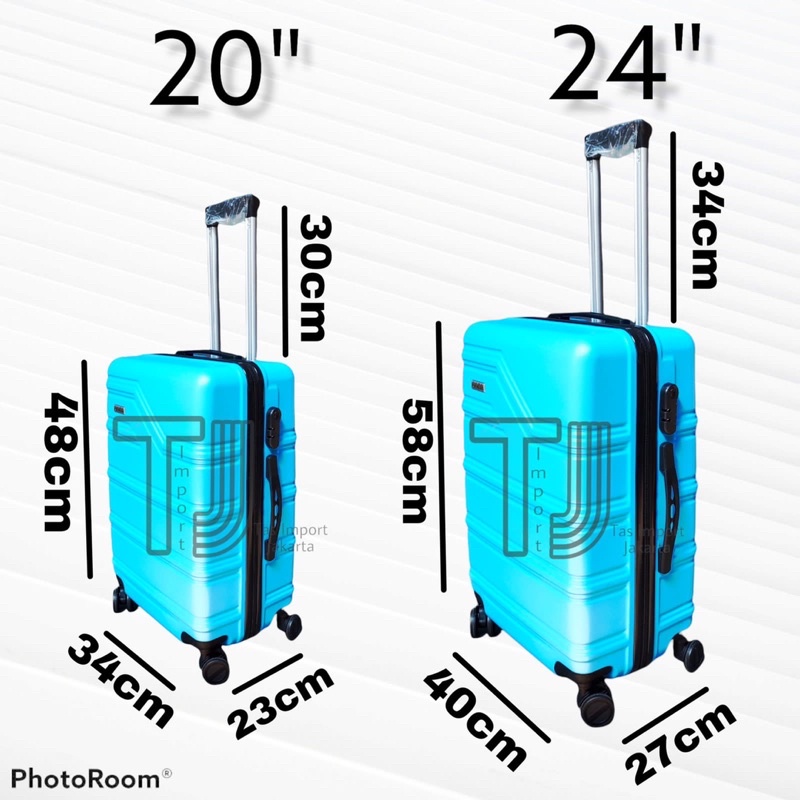 Ukuran : 24 inch / 24 in. Panjang koper : 40 cm Lebar Koper : 27 cm Tinggi Koper : 58 cm Berat Koper : 3.0 kg Bahan : Fiber Hardcase ABS Pure Murni