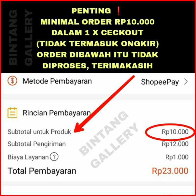 β Mohon Maaf Tidak Menerima Pesanan Urgent / Buru - buru SEMUA PESANAN DIKIRIM BERDASARKAN ANTRIAN YA KAK !!! - Waktu kemas Hari Normal ( 0 sampai H+1 ) untuk produk ready stok - Waktu kemas saat ada PROMO SHOPE* ( 0 sampai 3 HARI ), Karena pesanan OVERLOAD. Semua pengiriman malam, kurir pickup jam 6 sore, (Update Resi Jam 7-10 malam) β Budayakan MEMBACA deskripsi produk sebelum Order , Tidak menerima komplain yang disebabkan oleh kelalaian karena tidak membaca deskripsi produk terlebih dahulu . β Minimal order 10.000 ( belum termasuk ongkir ), boleh campur dengan produk lain ( Dibawah itu mohon maaf tidak diproses π ) β Pesanan yang sudah diproses TIDAK BISA DIB4TALKAN, jadi mohon untuk kakak teliti ulang sebelum melakukan pembayaran. β Sebelum dikirim barang sudah dicek berkali kali, JADI, Demi kenyamanan bersama, Mohon Lakukan VIDEO UNBOXING saat paket diterima dan dibuka, karena kami tidak menerima komplain jika ada kekurangan / kerusakan barang tanpa video unboxing. β Jika ada kesalahan produk atau kurang barang, harap melampirkan video unboxing , foto produk dan label pengiriman. Chat dulu ,jangan langsung memberikan penilaian buruk. β MEMBERI BINTANG 3 / KE BAWAH LANGSUNG KITA BLOKIR, Walaupun langganan. β PHP COD = BLOKIR β Tidak Menerima ganti alamat. Mohon Pastikan isi data nama, alamat, nomor telepon sudah benar & lengkap ( untuk memudahkan kurir menemukan alamat kakak ) . β Ongkir sudah terhitung otomatis di aplikasi Shopee. β Sebelum membeli akan ada estimasi dari Shopee barang akan tiba kapan, bila bercampur dengan barang Pre Order, maka pengiriman akan mengikuti barang Pre Order β Jika ada keterlambatan pengiriman, keluhan bisa langsung disampaikan kepada ekpedisi / kurir nya ya,, kami hanya penjual. β Terimakasih Buat Customer yang sudah memberikan penilaian yang baik, Semoga Usaha & Rejeki nya lancar βββββ