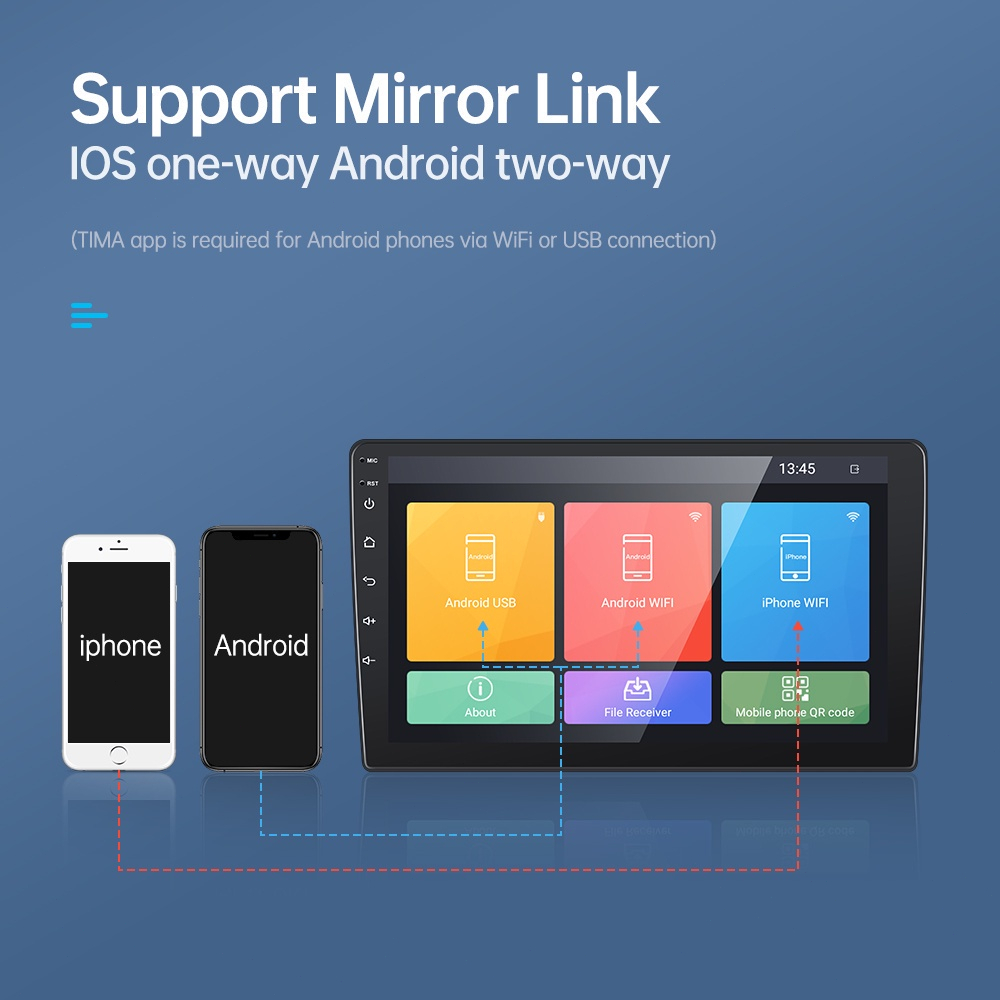 Fitur ✨ Radio (FM) ✨ Dukungan Membaca USB Flash Drive (Audio/Video/Gambar) ✨Fungsi input AUX belakang ✨ Fungsi Bluetooth ✨Output audio RCA dapat dihubungkan ke subwoofer ✨Membalikkan fungsi input kamera tampilan belakang (kamera tidak termasuk) ✨ Fungsi Input Video ✨Fungsi Pembelajaran Roda Kemudi Mobil Asli ✨Mendukung input cam dasbor Android ✨ Konektivitas WiFi ✨ Navigasi GPS ✨ Fungsi Mirroring Layar Telepon (untuk ponsel iPhone/Android) ✨ Dukungan Menginstal Aplikasi ✨Tema yang dapat dialihkan (25 UI untuk dipilih)