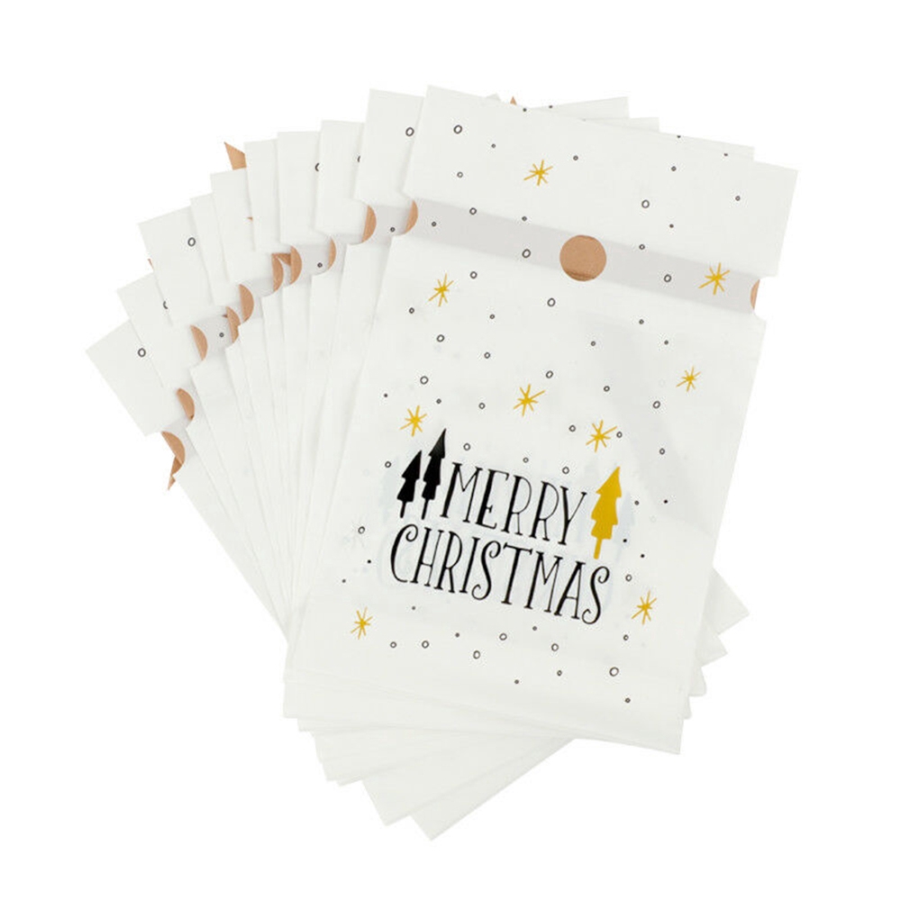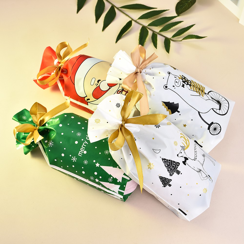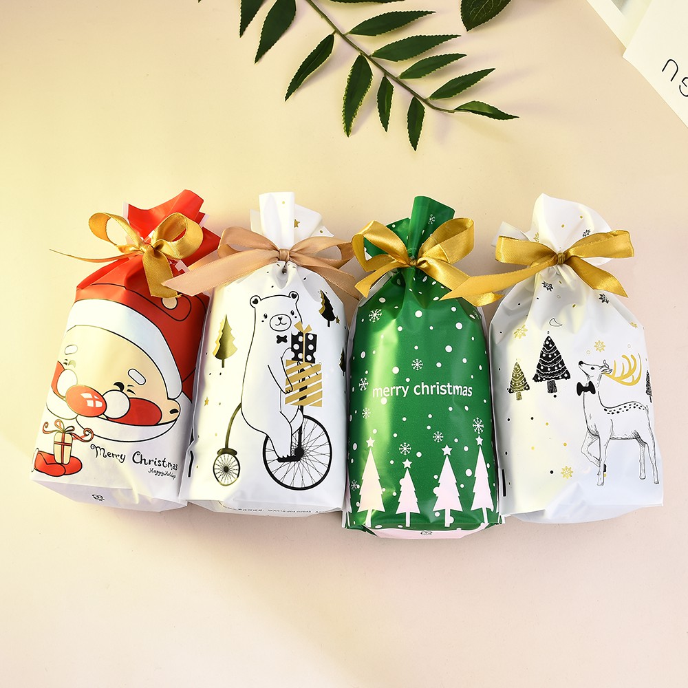 Detail 10 Pcs Kantong Plastik Motif Santa Claus / Rusa Natal Untuk Permen / Biskuit