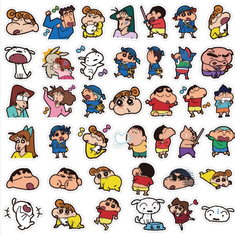 Detail 10 PCS Sticker Crayon Sin-Chan Kartun Jepang 4-6 cm