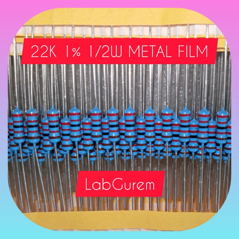 Elektronik > Perangkat Audio & Speaker > Amplifier & Mixer > 10 Resistor 1/2W 22K Ohm Taiwan metal film 1% kaki tembaga