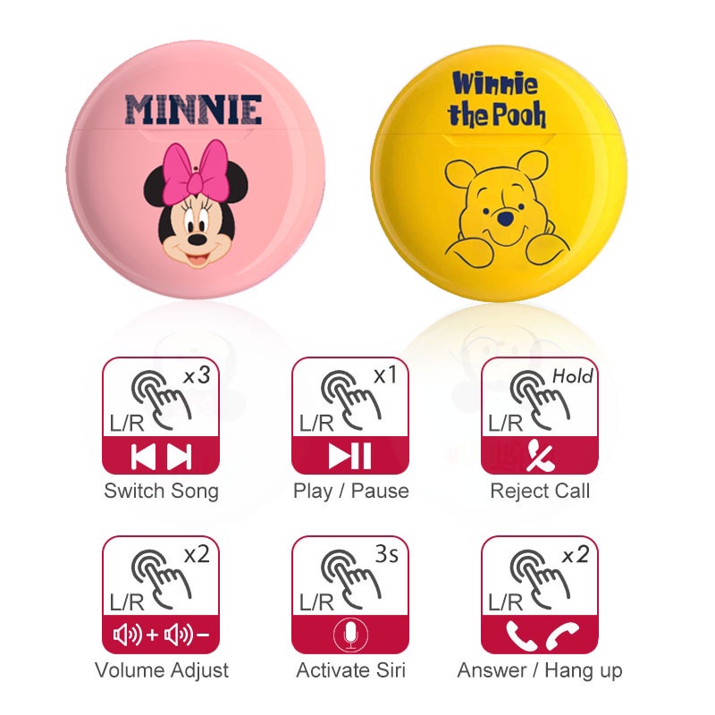 Detail Disney TWS Wireless Bluetooth Earphones Sports Headphones HD Call with Stereo Mic Headset HIFI In-Ear Noise Earbuds