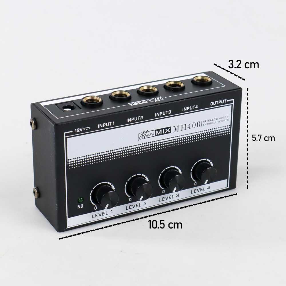 Audio mixer ini memiliki 4 channel input yang berfungsi untuk memadukan atau mencampurkan beberapa sumber suara. Hal itu dilakukan agar suara yang dihasilkan menjadi lebih enak didengar dan memiliki harmonisasi suara. Biasanya alat ini digunakan dalam berbagai macam keperluan terutama untuk keperluan pertunjukkan. Fitur 4 Channel Alat ini memiliki empat channel input yang dapat dicolokkan ke empat buah mikrofon atau alat musik sehingga Anda dapat menggunakannya untuk berkaraoke dengan teman atau keluarga. Knob Volume Independen Audio mixer memiliki empat buah knob volume yang independen. Oleh karena itu, Anda dapat mengatur masing-masing volume dari tiap-tiap mikrofon atau alat musik yang Anda sambungkan ke audio mixer. Desain Portabel Karaoke mixer ini memiliki desain yang ringkas dan memiliki ukuran yang kecil, hanya sekitar 10.5 x 5.7 x 3.2 cm. Dengan ukuran tersebut, Anda dapat membawa audio mixer dengan mudah dan memasukkannya ke dalam tas Anda.