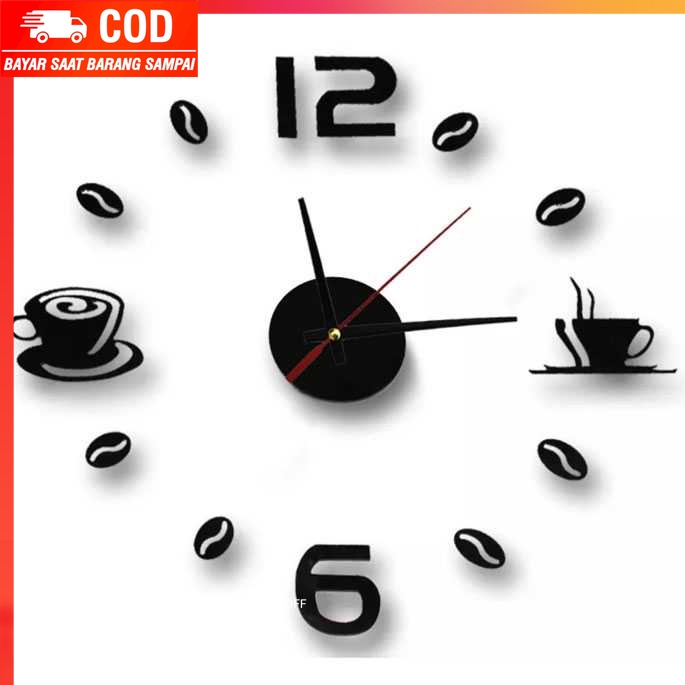Spesifikasi Taffware Jam Dinding DIY Giant Wall Clock 30cm Coffee Bell - DIY-12
