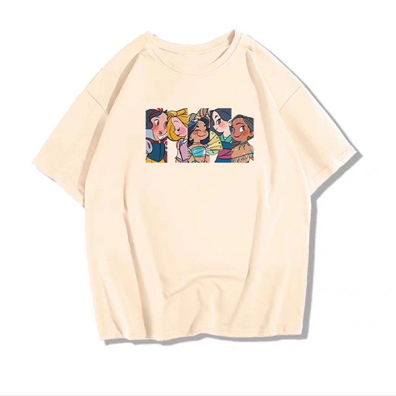 Detail [100% Katun]Cartoon Kaos Lengan Pendek Cream Atasan Wanita Oversize Printed T-shirt Kekinian Korean Style