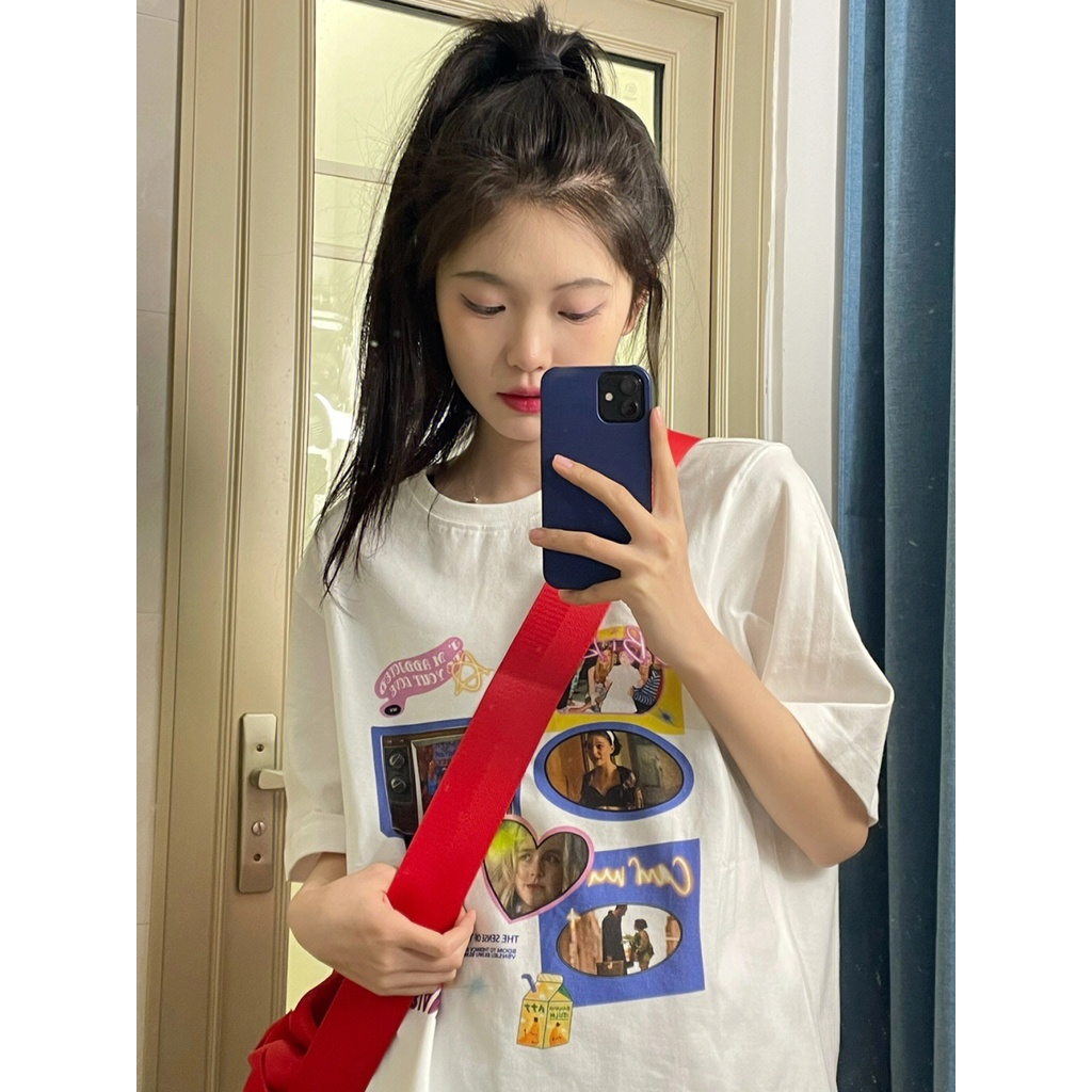 Detail [100% Katun]Kaos Couple American style Oversize Kekinian Lengan Pendek Korean Style Printed T-shirt Baju Wanita Hitam