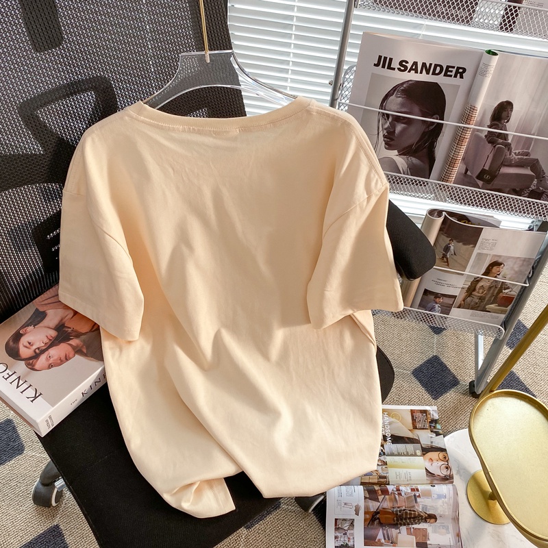 Detail [100% Katun]Kaos Cream Atasan Wanita Lengan Pendek Oversize Printed T-shirt Baju Wanita Kekinian Korean Style