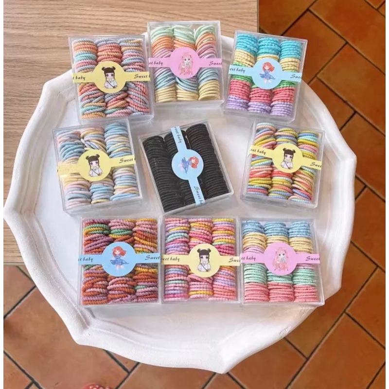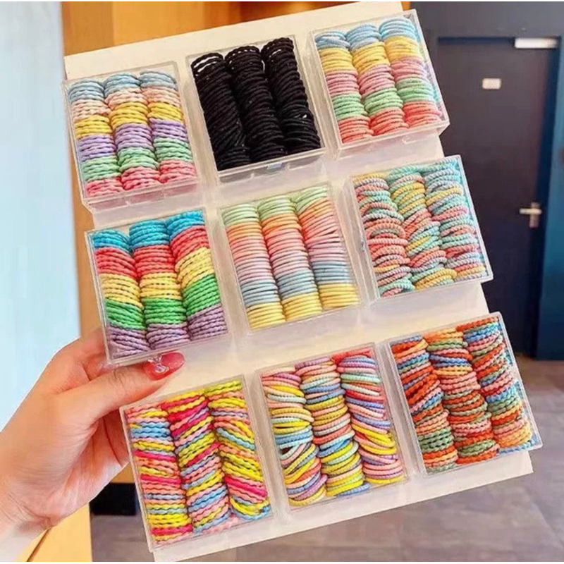 Bahan : karet kapasitas : 1 box isi 100pcs pilihan warna : kami mengirim warna secara random packing box akrilic sesuai foto