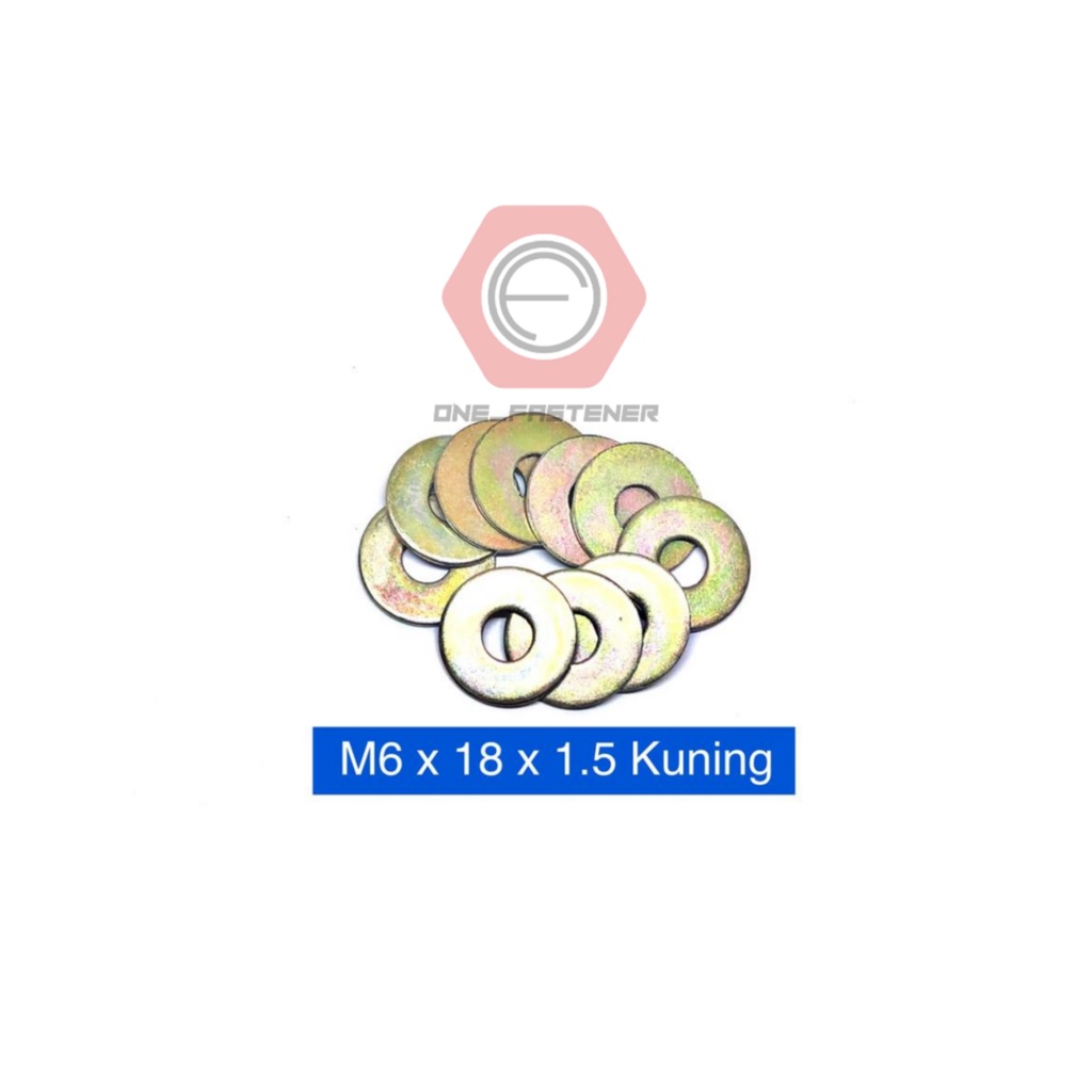 Perlengkapan Rumah > Perkakas > Perkakas Tangan > 100 pcs Ring Plat M6 Lebar TEBAL Kuning M6x18 6mm 6mili Washer Plat WP