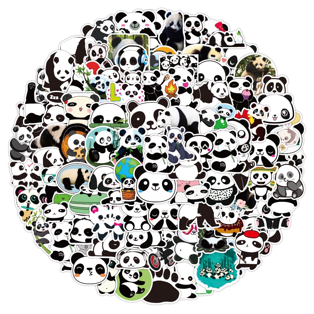 Buku & Alat Tulis > Buku Tulis & Kertas > Label & Stiker > 100 Pieces/Pack Cute Panda Design Waterproof Laptop Skateboard Decoration Stickers
