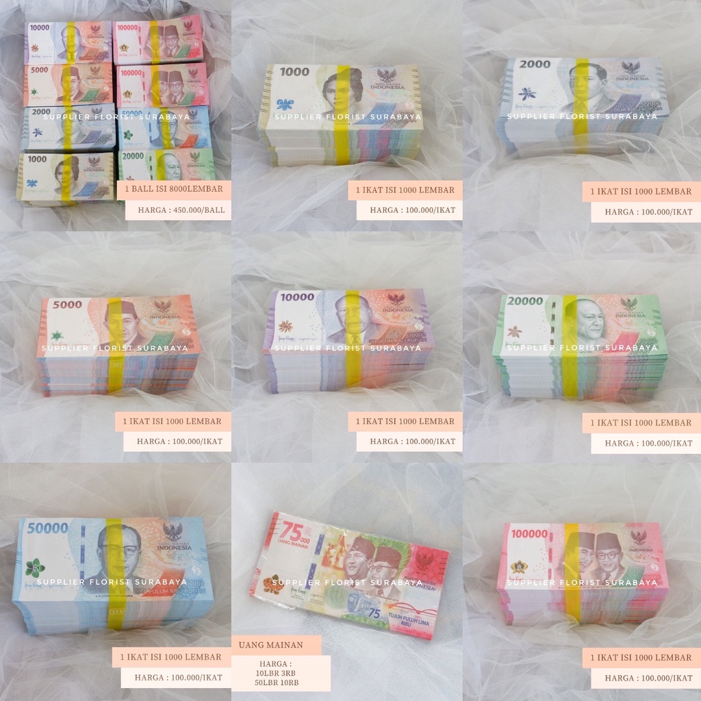 Hobi & Koleksi > Hobi & Koleksi Lainnya > 1000 LEMBAR UANG MAINAN MIRIP ASLI DENGAN NOMINAL YANG SAMA, UANG MONOPOLI, UANG UANGAN, MAHAR PERNIKAHAN BUKET UANG