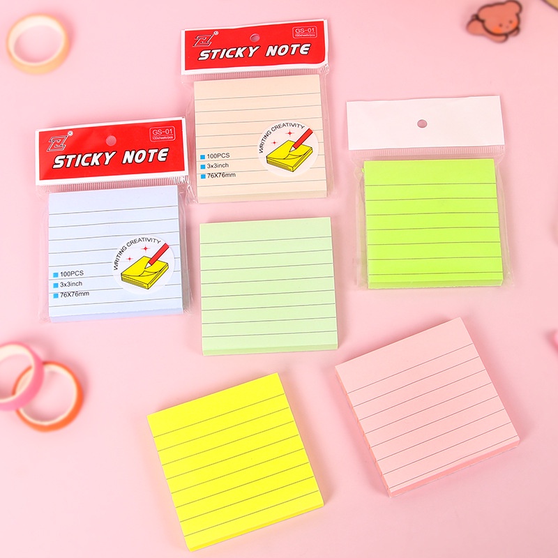 Buku & Alat Tulis > Buku Tulis & Kertas > Memo & Sticky Notes > 100lembar Kantor Berwarna Kenyamanan Memo Garis Horizontal Perekat Kertas Nota Siswa Garis Sticky Notes