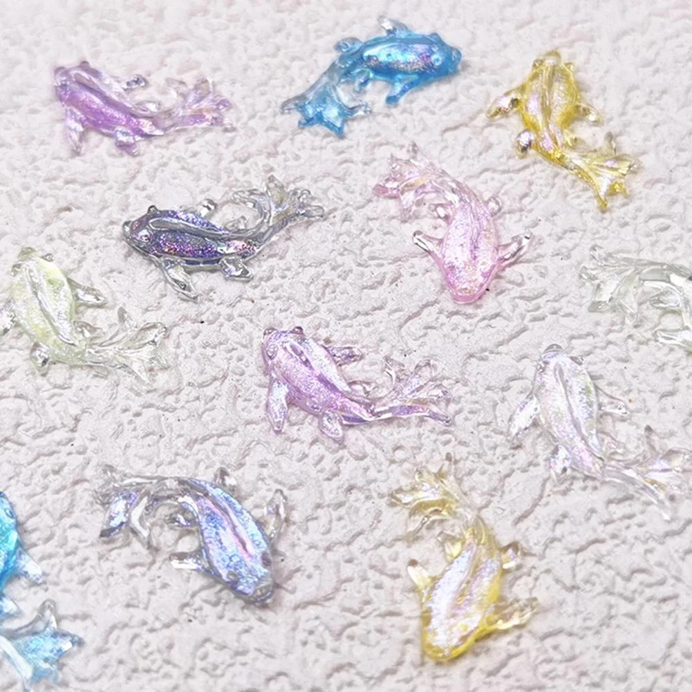 100pcs/bag 3D Resin Glitter Kristal Aurora Warna Ikan Mas Manicure Ornamen Kawaii Transparan DIY Nail Art Dekorasi Aksesoris