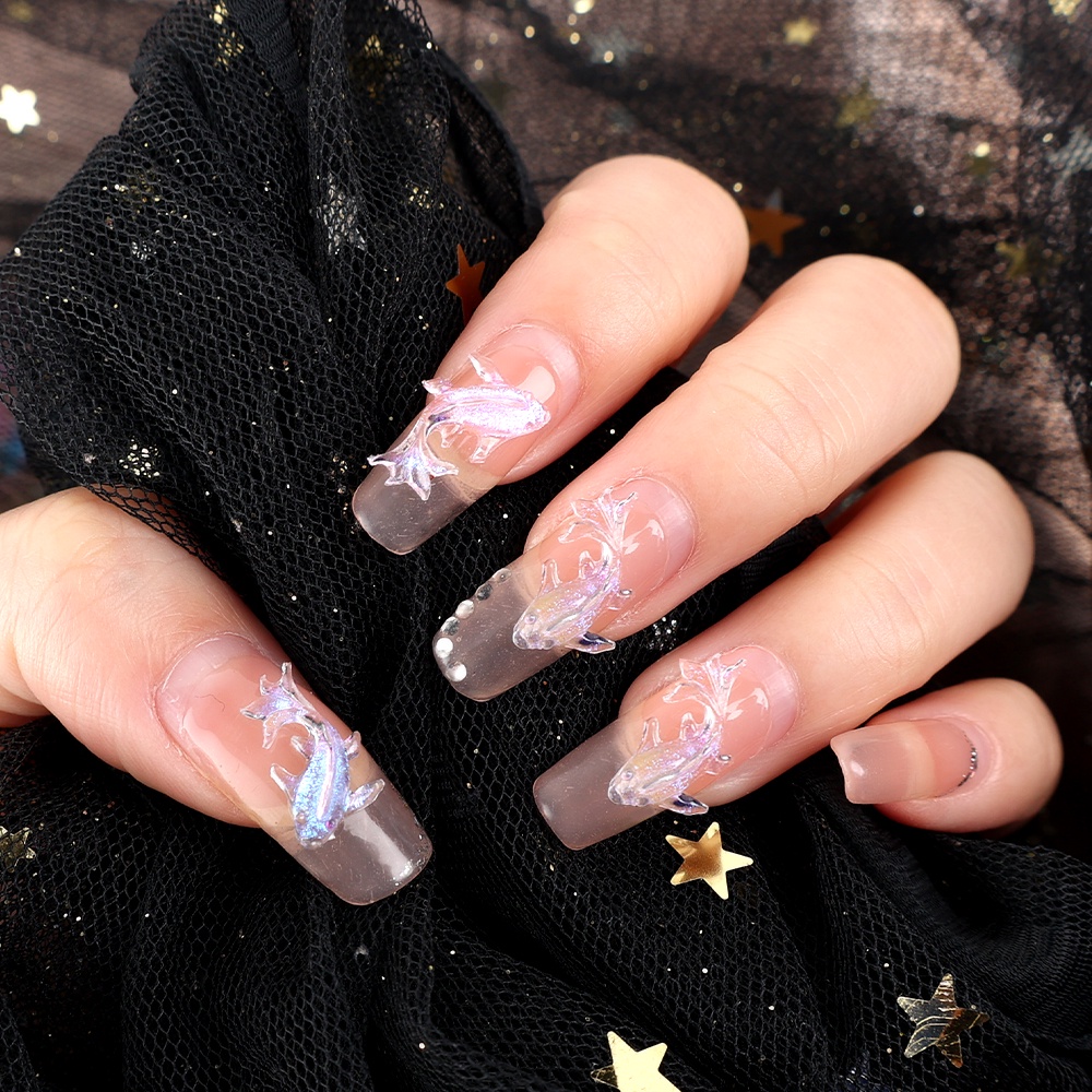 Detail 100pcs/bag 3D Resin Glitter Kristal Aurora Warna Ikan Mas Manicure Ornamen Kawaii Transparan DIY Nail Art Dekorasi Aksesoris