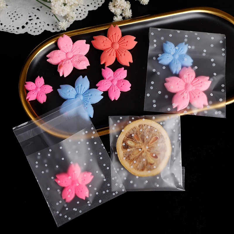 Perlengkapan Rumah > Peralatan Dapur > Tempat Penyimpanan Makanan > 100pcs/bag Tas Biskuit Dots Transparan Multi Ukuran/Kantong Kemasan Kue Permen Motif Snowflakes Putih