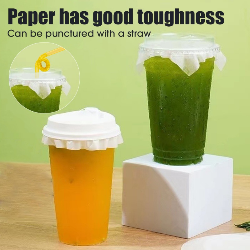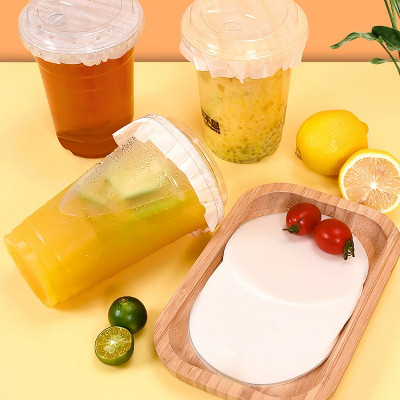 Perlengkapan Rumah > Peralatan Dapur > Cling Wrap > 100pcs Gelas Teh Susu Bulat Kertas Kemasan Anti Bocor/Disposable Fruit Juices Coffee Cup Sealing Films
