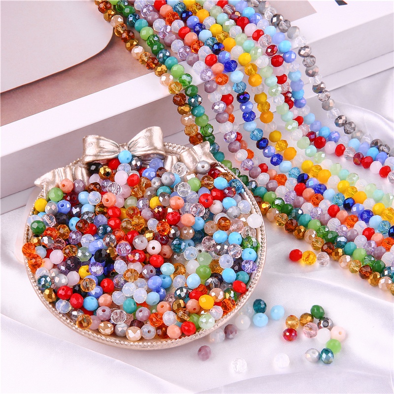 Detail 100pcs Manik-Manik Kaca Kristal Segi Rondelle Austria Manik-Manik Bulat Spacer Longgar Untuk Membuat Perhiasan