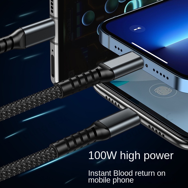 100w Kabel Transparan Gaya Punk 3in1 Kabel Pengisian Super Cepat Dengan Cahaya Biru 6A Kabel Data Usb Untuk ios Tipe C Android