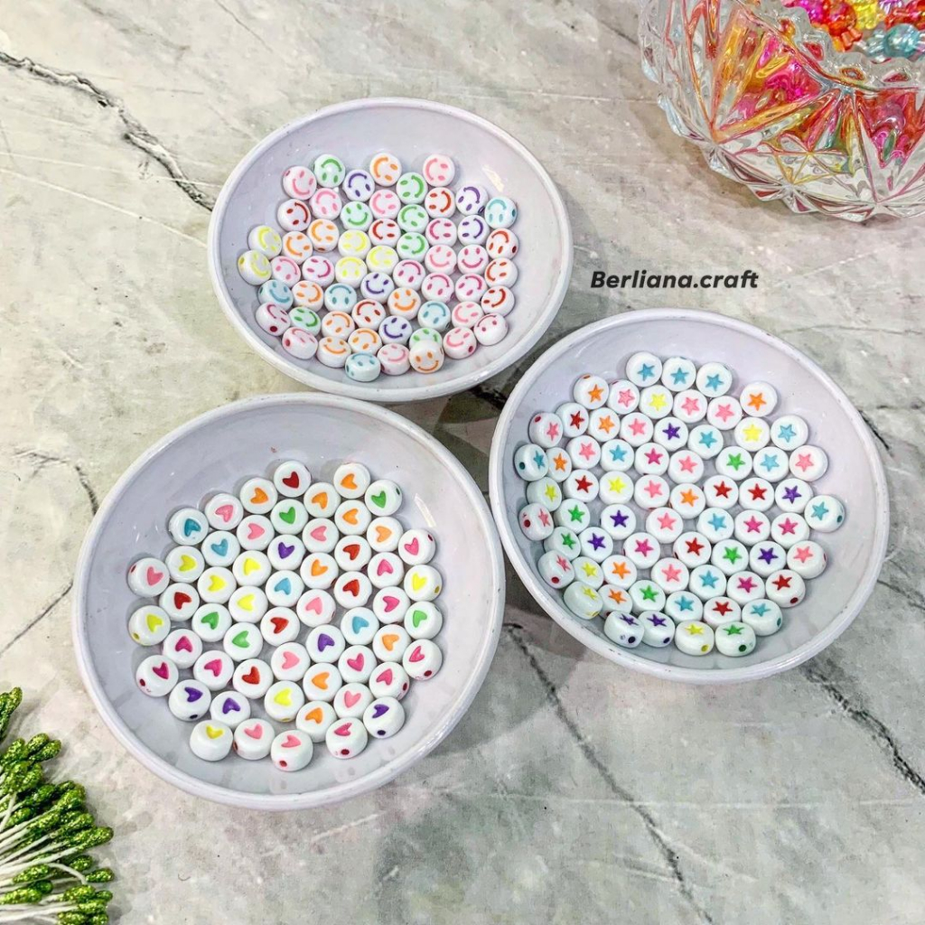 Aksesoris Fashion > Aksesoris Tambahan > Aksesoris Tambahan Lainnya > (10gr) Mote Manik Bulat Pipih Love Bintang Smile