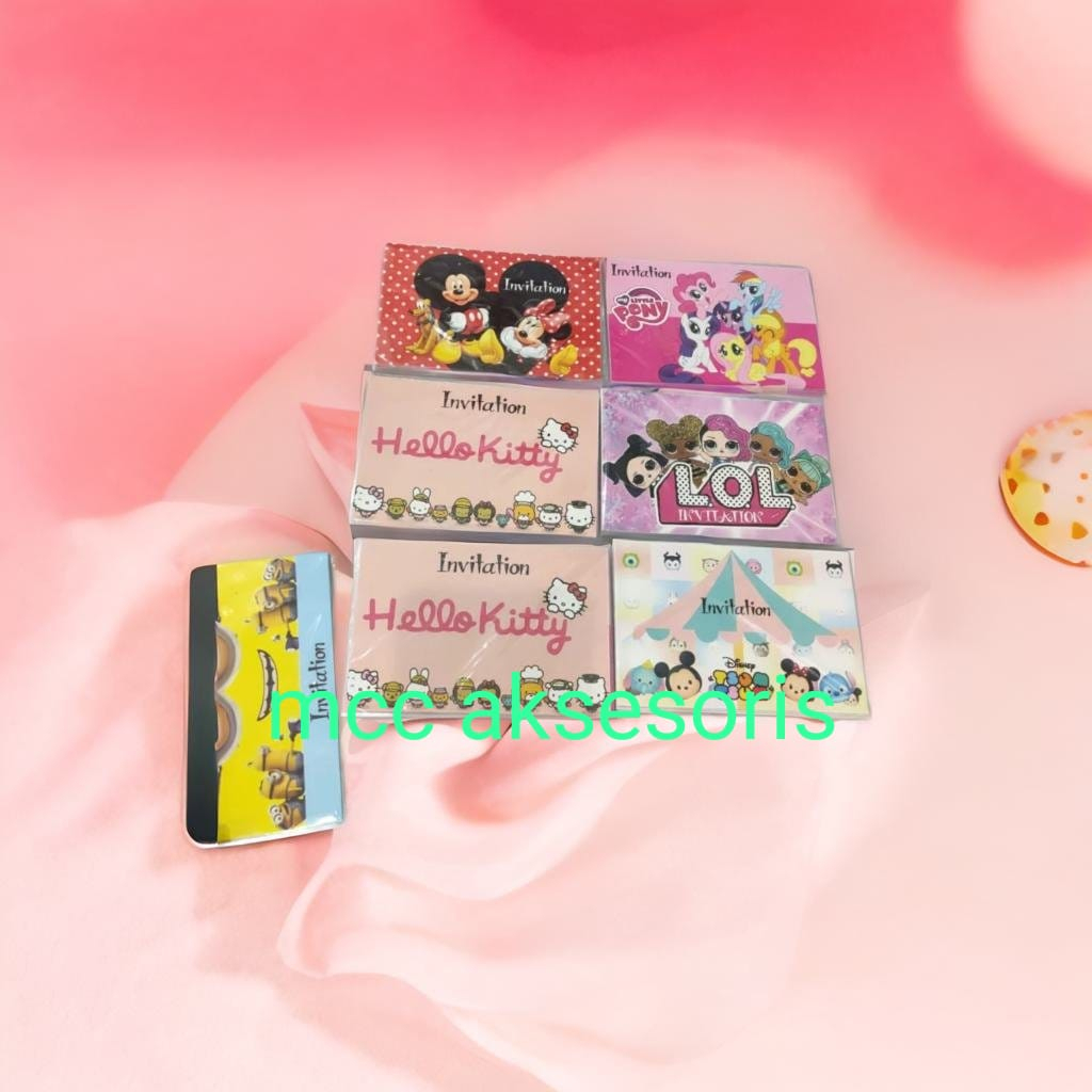 Kartu Undangan karakter MURAH!! isi undangan 10pcs dalam 1pack lipat satu + plastik di dalam nya. KARAKTER : LOL UNICORN MICKEY HELLO KITTY SPIDERMAN AVENGERS FROZEN PRINCES BATMAN CARS TAYO TSUM TSUM BABYSHARK DORAEMON
