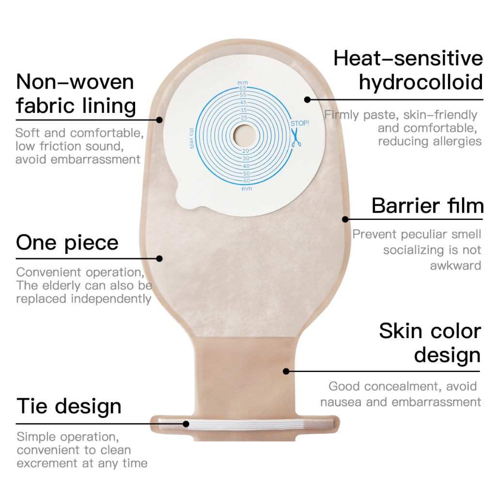 10Pcs/Kotak Ostomy Tas Satu Potong Memotong Lubang Colostomy Ostomy Tas Cut UKURAN 20mm-65mm Beige Cover