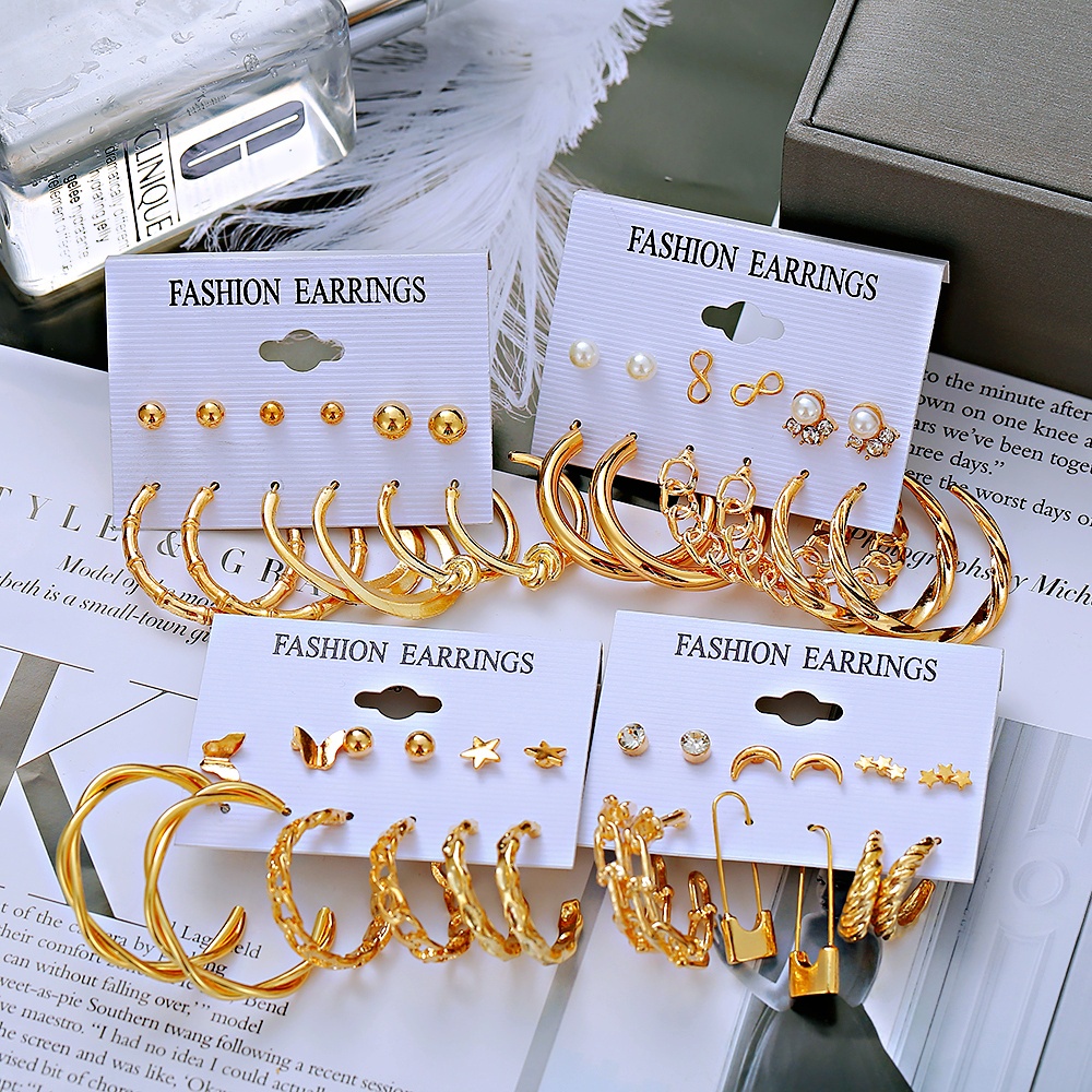 Name:10Pcs/Set Fashion Pearl Earring Set Retro Butterfly Gold Drop Stud Earrings Luxury Women Jewelry Accessories Gift Material: Alloy Color: as the picture Style: simple&fashion Occasion : Party Birthday Gift Package : 1 Set of Earrings -----------------------------------------------------------------------------