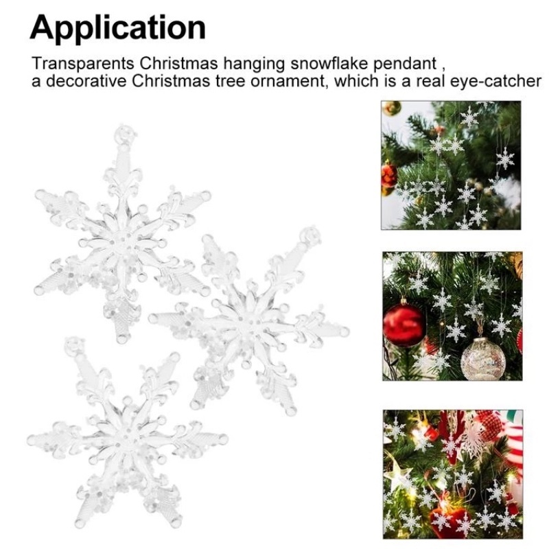 Detail 10pcs Taman Pintu Dekorasi Kamar Natal Tahun Baru Liburan Pesta Dekorasi Murni Bening Akrilik Kepingan Salju Pohon Natal Jendela Gantung Ornamen Halus DIY Serpihan Liontin