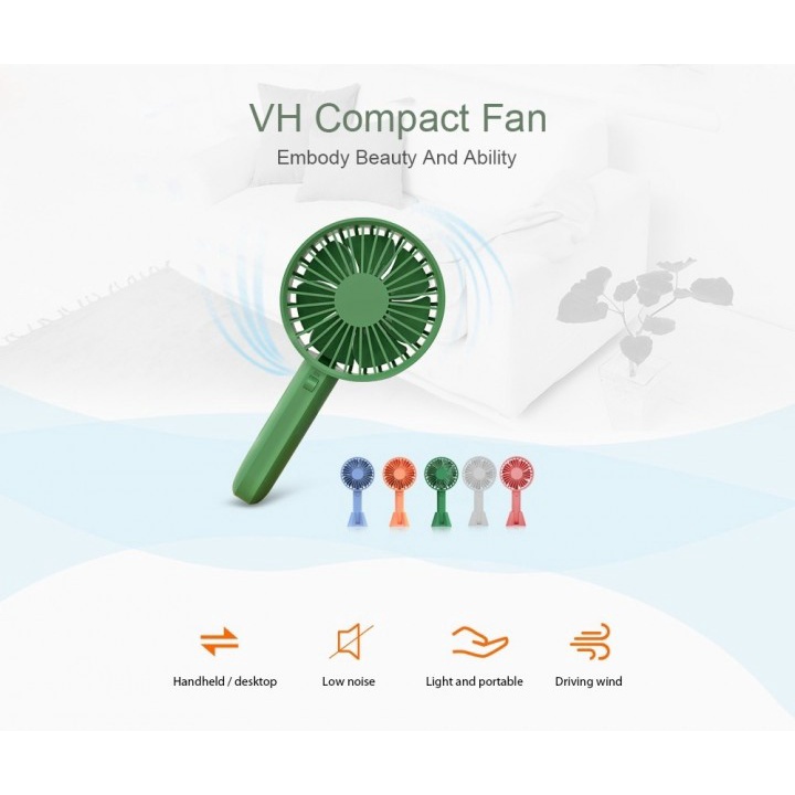 VH Portable 2-in-1 Smart Desktop Handheld Mini Fan merupakan sebuah kipas portable yang bisa digunakan dengan cara digenggam (handheld) atau diletakkan di meja (desktop).