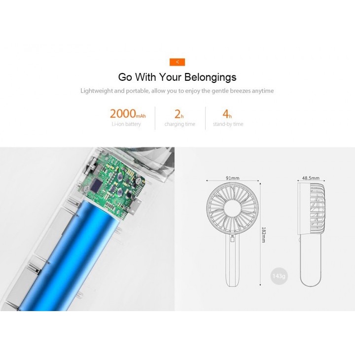 Menggunakan sumber tenaga dari Rechargeable Battery 2000mAh yang bisa diisi ulang ketika daya habis. Cukup lakukan pengisian daya 2 jam, maka baterai akan terisi dengan penuh. Untuk pengisiannya anda bisa menggunakan kabel Micro USB karena kipas ini menggunakan port Micro USB untuk pengisian dayanya.