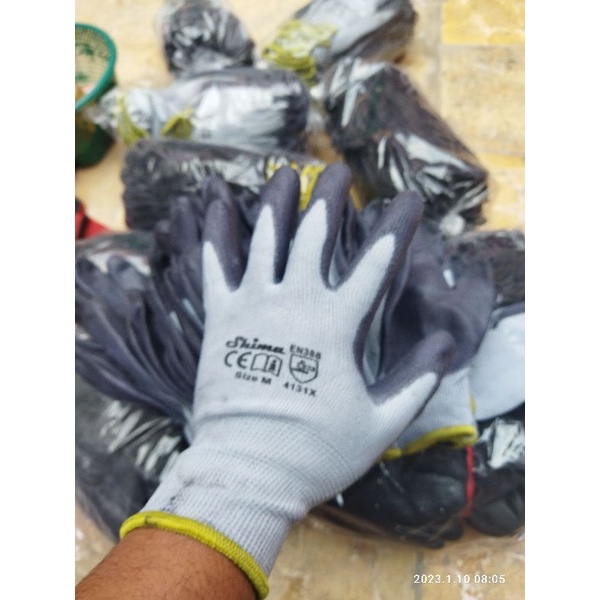 Video perkenalan produk 12 pasanvg sarung tangan safetybkerja working Lapis karet GROSI. Sumber: Shopee.